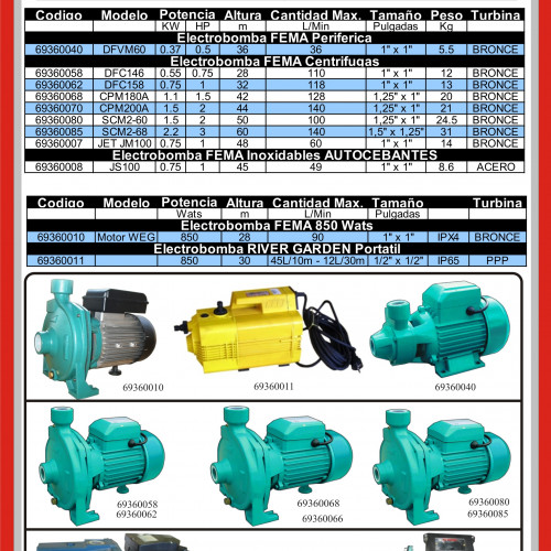 Electrobombas Periféricas y Centrífugas Para Agua desde 1/2HP hasta 3HP Marca FEMA