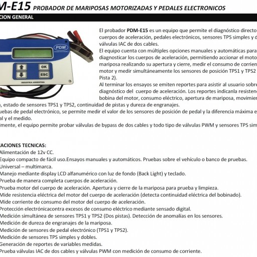 Probador/Analizador de Mariposas, Pedales Electrónicos y Sensores PASO-A-PASO de Inyección electrónica Marca PDM-E15-PITARCH