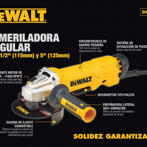 Amoladora Angular 5” Tecnología LITHIUM Con Velocidad Variable Marca DeWALT DWE4336 (Ex D28136)