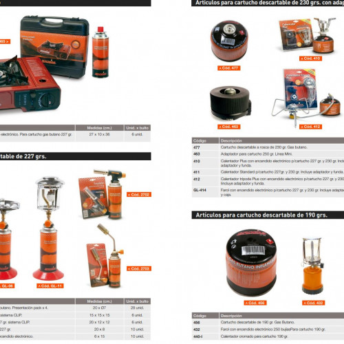 Anafes-Faroles-Soldadores-Calentadores a Cartuchos de Gas Butano Descartables Marca BROGAS 465-463-466-477