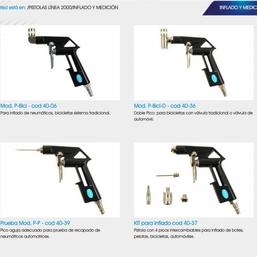 Pistolas Para Inflar Neumáticos de BICICLETAS/MOTOS/BOTES/AUTOMOTOR Sin Manómetro Para Conectar al Compresor de Aire Marca BEMAR 4006-4036-4037-4039
