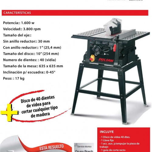 SIERRA CIRCULAR DE PIE PARA CARPINTERIA 1600w CON HOJA DE 10” SKIL 3610