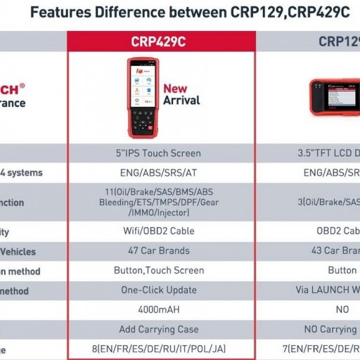 Scanner (Escaner-Scaner) Lector Diagnóstico de Fallas Automotriz Multimarcas Actualizables Conexión OBD2-OBDII Marca LAUNCH CRP429C Vs. LAUNCH 129