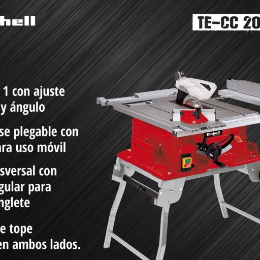 Sierra Circular de Pie (de Banco-de Mesa) Con Sistema Escuadradora Base Plegable y Ruedas Marca EINHELL TECC 2025UF EXPERT