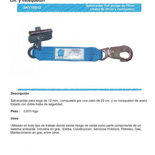 Salvacaidas (Anticaídas) Tipo T4 Inox Con Cola De Amarre Para Soga de Hasta 14mm Marca SKY ARNESES 10512