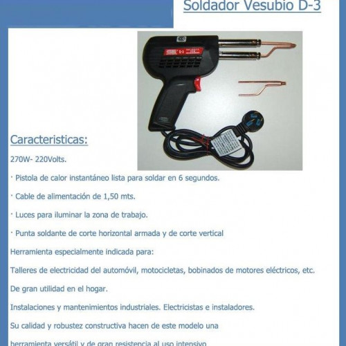 Soldador Eléctrico Para Electrónica Tipo Pistola Marca VESUBIO D3