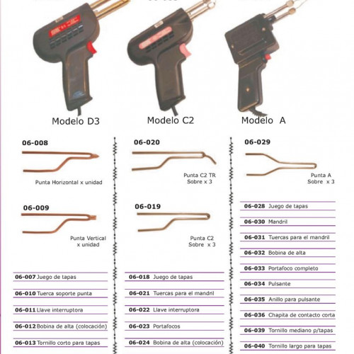 Soldadores Instantáneos de Estaño Tipo Pistola Para Electrónica y Electricidad Con Todos Sus Accesorios y Repuestos marca VESUBIO D3, VESUBIO C2 y VESUBIO A