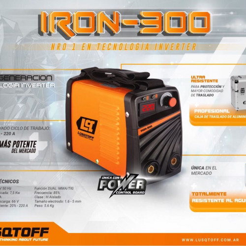 Soldadora Para Electrodos Con Tecnología INVERTER MMA Blindada Resistente a la Lluvia Marca LÜSQTOFF IRON-300