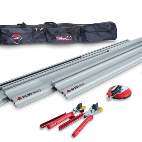 Sistema de Corte Para Porcelanatos Muy Largos hasta 3,3mts Con Reglas de Aluminio Encastrables y Ventosas Marca RUBI SLIM SYSTEM