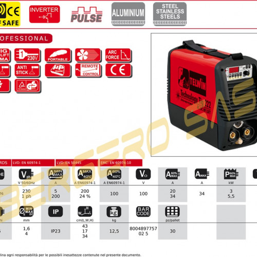 Soldadora Inverter - Tig con Tecnología AC/DC Especial Aluminio Marca TELWIN ITALIA