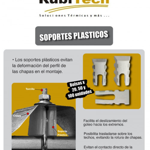 Topes Soportes Separadores Plásticos De Techos De Chapa Acanalada Sinusoidal y Trapezoidal Para Autoperforantes y Grampas Tipo J Marca RUBITECH