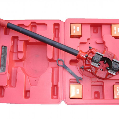 Terraja Con Crique Para Caños Plásticos y Galvanizados Regulable Con Peines (Dados) Cambiables Para ½”-3/4”-1”-1.1/4” BSPT Marca BREMEN 2472