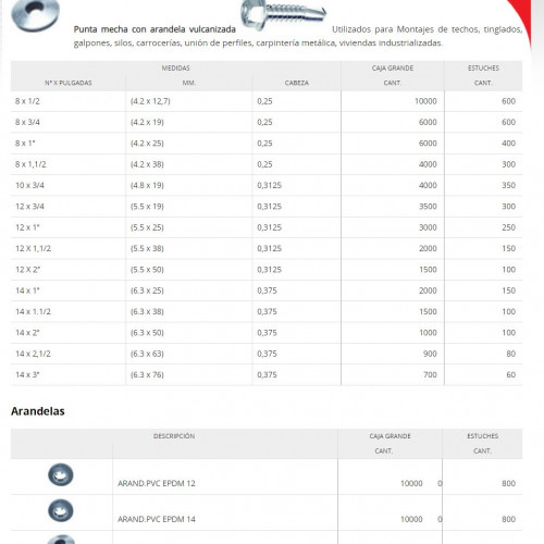 Tornillos Autoperforantes Punta Mecha Cabeza Hexagonal Con Arandela de Neoprene Marca TEL-HEX TIPO-1