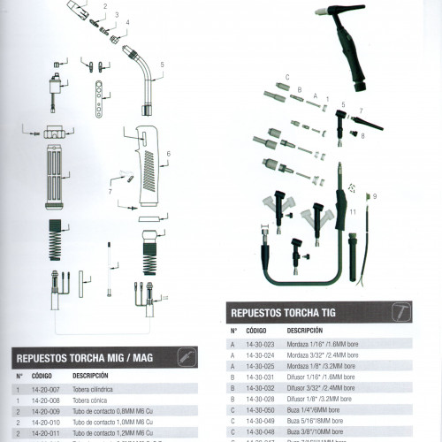 Torcha TIG (Antorcha T.I.G.) Despiece Con Todos Sus Componentes y Consumibles Buzas-Toberas-Electrodos-Vainas- Marca NIWA