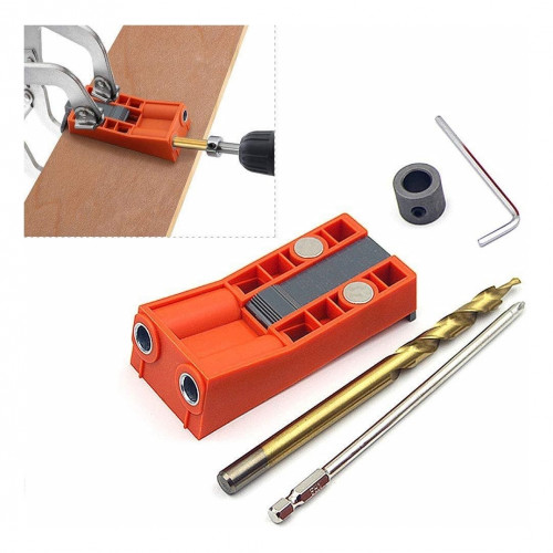 TITULO: “Plantilla Guía de Perforado Para Ensamble Con Tornillos Ocultos Inclinados en KIT Con Mecha-Punta Atornilladora-Guía-Tapones Marca RUHLMANN RUH51302