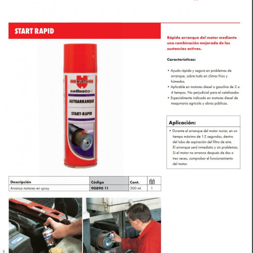 Arrancamotores (AUTOARRANQUE-ARRANCADOR) en Aerosol de Acción Instantánea Para Motores Nafteros y Diesel Marca WÜRTH START-RAPID WURTH