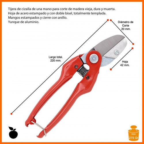 Tijera Cizalla Con Mordaza Fija De Apoyo Tipo Yunque Para Ramas Secas y Mangueras Marca BAHCO-SANDVIK P138-22F