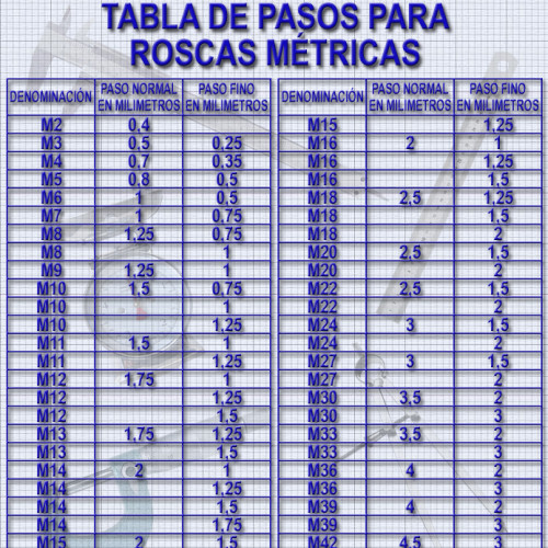 TABLA DE PASOS PARA ROSCAS MÉTRICAS