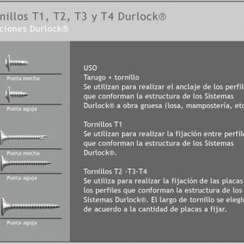 MODELOS DE TORNILLOS AUTOPERFORANTES PARA MADERA Y DURLOCK T1, T2, T3