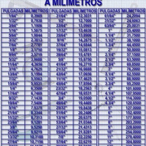 TABLA EQUIVALENCIAS DE PULGADA A MILÍMETROS