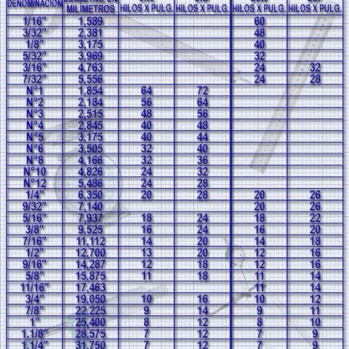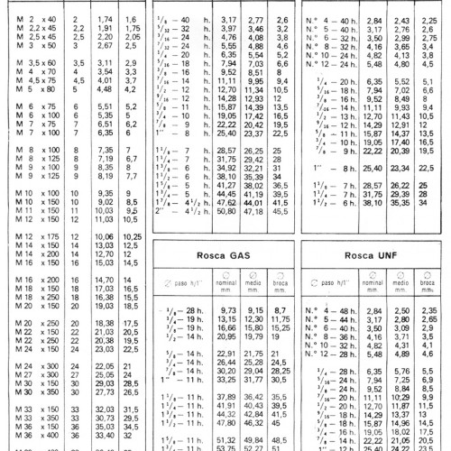 TABLA DE PASOS PARA ROSCAS AMERICANA Y WHITWORTH