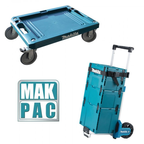 Sistema de Cajas Para Herramientas y Conservadoras de Alimentos Encastrables y Apilables Con Carreta De Aluminio Plegable Marca MAKITA MAKPAC