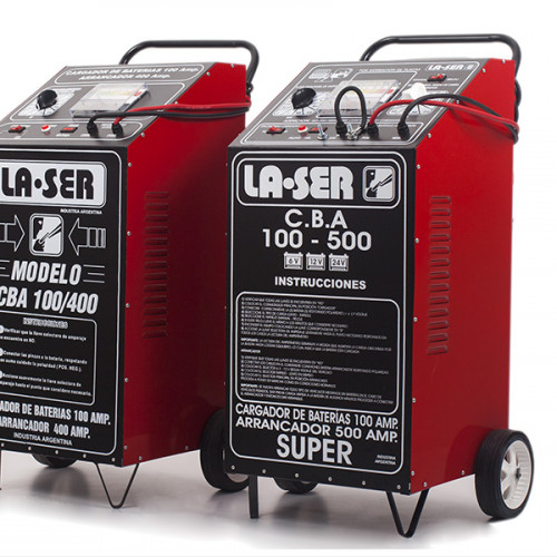 “Cargador Arrancador de Baterías Tipo Carro Capacidad de hasta 100-500Amp. 12/24v Marca LASER CBA 100/400-CBA 100/500 LA-SER SUPER