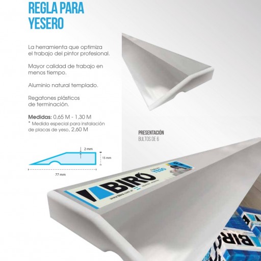 Regla de Aluminio Para Uso En Yeso y Durlock (YESERO-YESERÍA-CONSTRUCCIÓN EN SECO) Marca BIRO