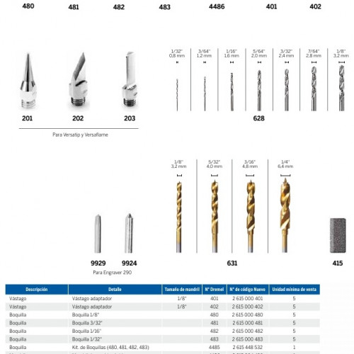 Vastago, Boquillas, Pinzas Mandriles y Brocas
