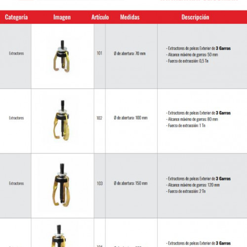 Extractores de Poleas Exterior de 3 Garras Marca EXTRAPOL Modelo 101-102-103-104