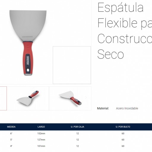 Espátulas Para Construcción en Seco (DURLOK) Flexibles de ACERO INOX y Mango Golpeador Marca BREMEN 7251-7252-7253