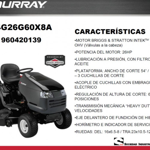 Mini Tractor De Uso Comercial Profesional Motor 26HP con 54” de Corte Marca MURRAY/BRIGGS & STRATTON
