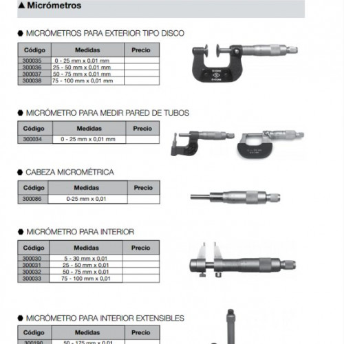 Micrómetros Mecánicos De Interiores y Para Medir Pared De Tubos (Caños) Mediante Platillos Marca STRONGER MEDICION