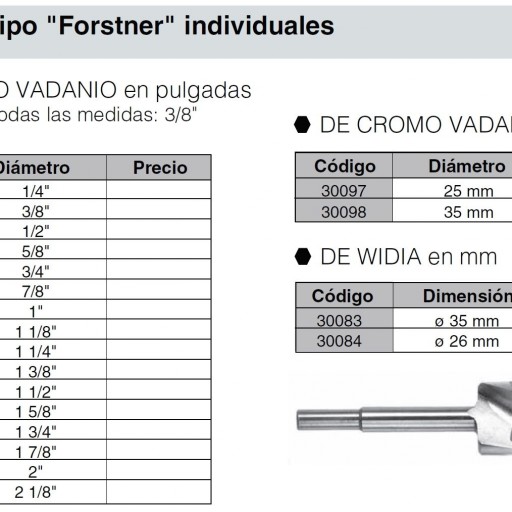 Mechas Para Madera Tipo FORSTNER (Bisagreras-Bisagras) de Cromo Vanadio y Widia Marca STRONGER-IRWIN