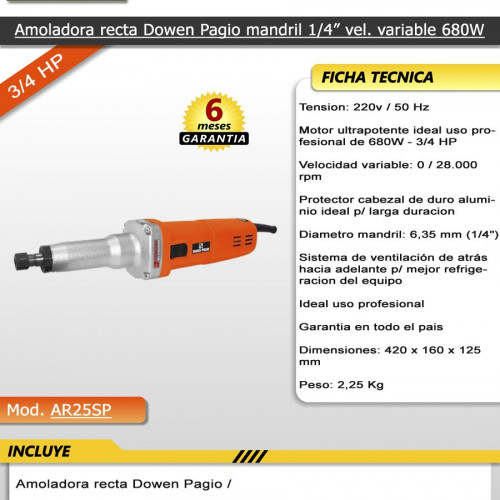 Amoladora Recta (Turbineta) Cuello Largo Con Velocidad Variable Marca DOWEN PAGIO AR25SP