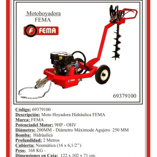 Moto Hoyadora Para Dos Operarios y Para Mecha De Hasta 500mm Con Motor A Nafta Marca FEMA