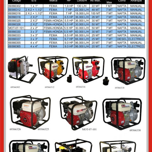 Motobombas a Explosión Nafteras y Diesel Para desagote De Agua Límpia o Cloacal Marca FEMA-DUCA
