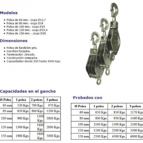 Motones Poleas Roldanas de Canal Simple, Doble y Triple Para Usar En Altura Con Silletas Marca GAN-MAR