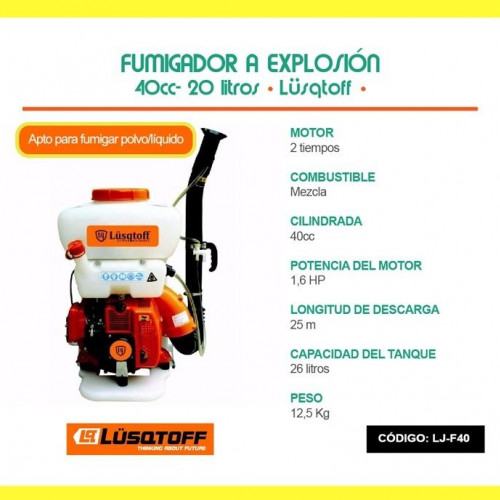 Moto Fumigador a Explosión Tipo Mochila 2-TIEMPOS Marca LÜSQTOFF LJ-F40