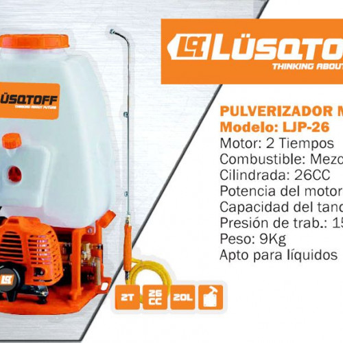 Moto Pulverizador a Explosión Tipo Mochila Con Motor 2-TIEMPOS Marca LÜSQTOFF LJ-P26