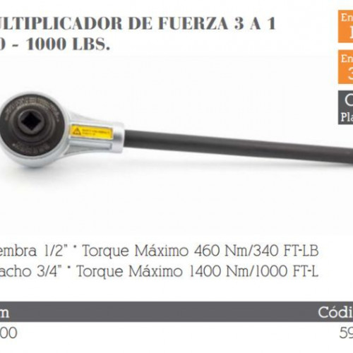Multiplicador de Torque (Fuerza) Para Torquímetros 3-A-1 Encastre de ½” A ¾” 1400Nm Marca BREMEN 5932