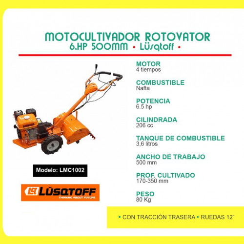 Motocultivador Rotovator a Explosión Nafta con Tracción Marca LÜSQTOFF LMC1002
