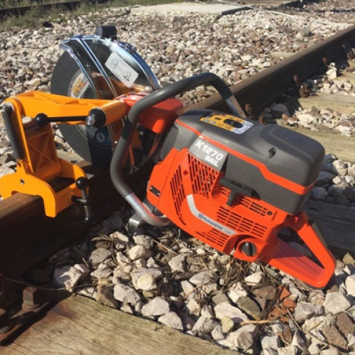 Motocortadora a Explosión Tipo Motosierra Para Cortar Rieles Ferroviarios Con Guía Tipo Bisagra y Disco de 400mm Marca HUSQVARNA K1270 RIEL 16