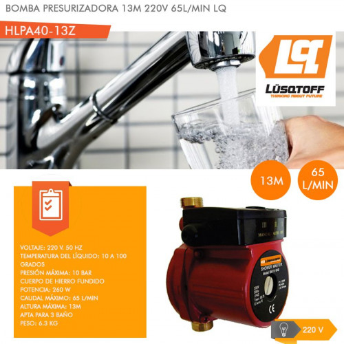 Bomba Presurizadora (Elevadora de Presión y Caudal) Para Uso domiciliario y Profesional Marca LÜSQTOFF HLPA40-13Z